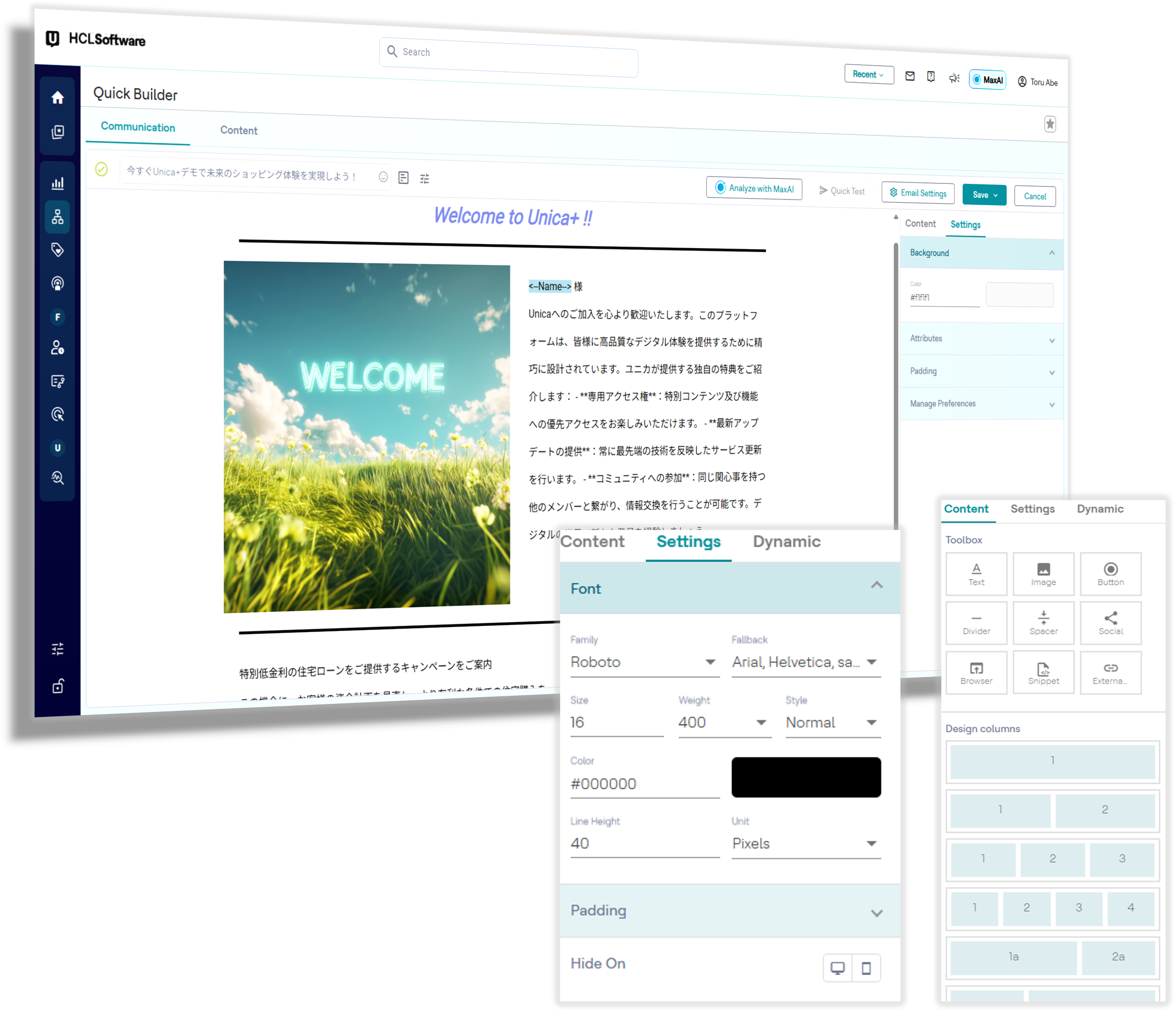 Unica+は、AIエージェント 「Max AI」 とデータ統合をさらに強化する 「Detect」 「CDP」 を追加し、より直感的に使いやすくなったUIを携えています。